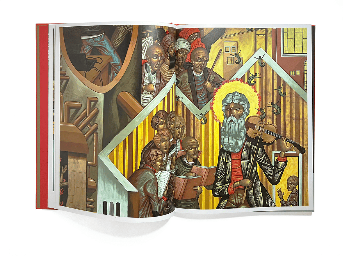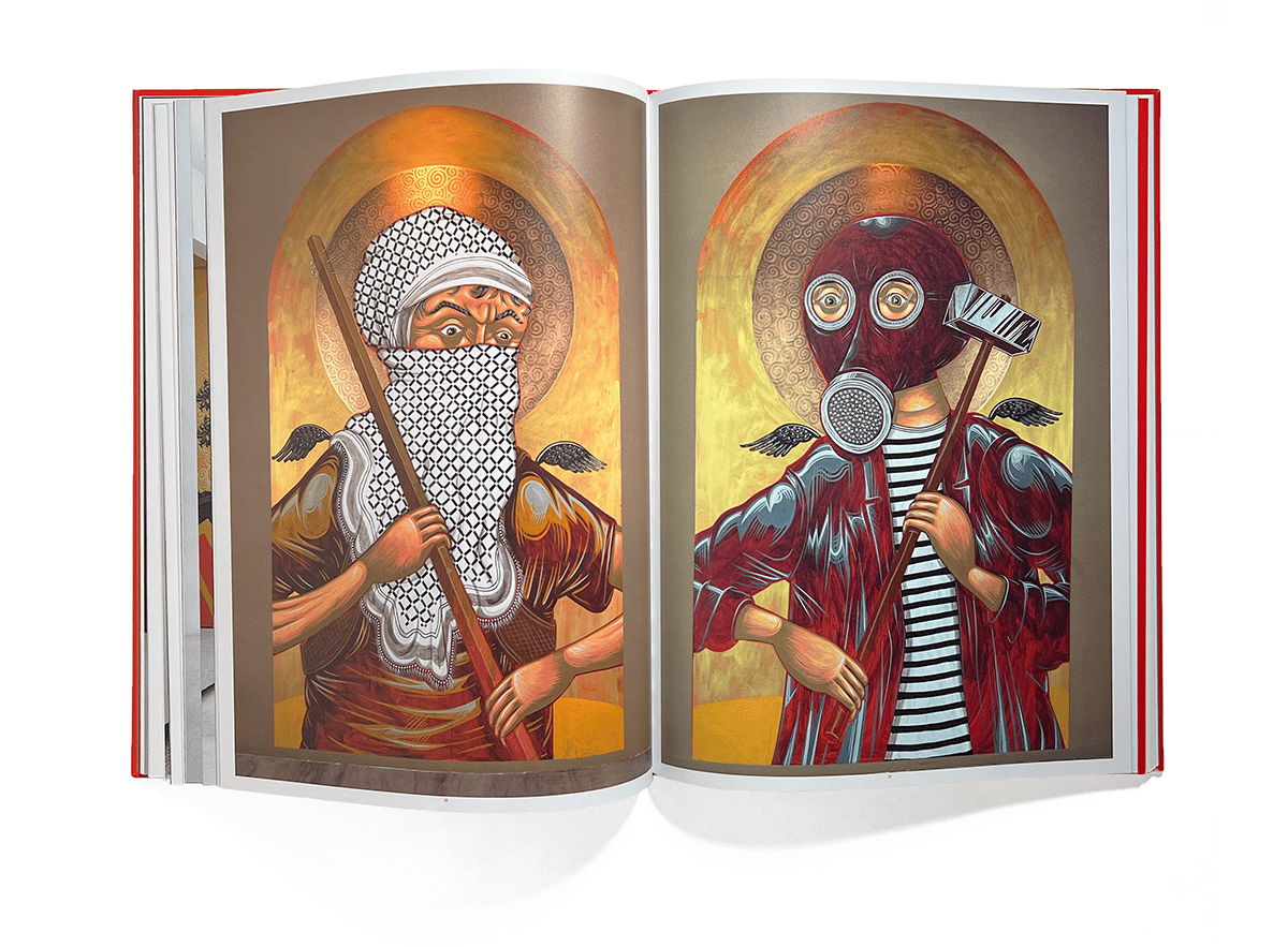 Greek artist Stelios Faitakis (1976-2023) was a master of depicting modern subjects in a style reminiscent of Greek Orthodox icons. The distinctive and technically outstanding visual language of his paintings, skillfully combine the depiction of modern subjects with the influence of Byzantine, Russian, and Eastern iconic painting.