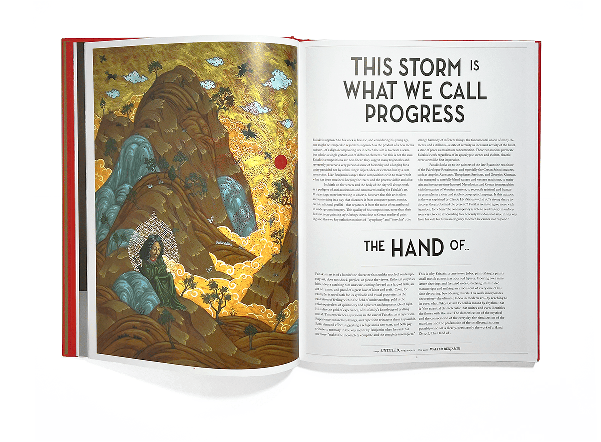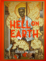The trademarks of his work are the intensive use of the color gold and images of halos, which were prevalent in medieval painting styles. Faitakis’s perspectives are unsettling, his content provocative. Referencing numerous styles, his images juxtapose Medusa-headed giraffes with skateboarders riding waves of destruction or religious martyrs and bizarre gangsters with suffering lovers. Violence, death, and destruction lay siege to his apocalyptical landscapes. Stelios Faitakis, lived and worked in Athens and painted since he was a child, building worlds out of his images just as masterfully as he broke them down again. The richness of detail in his work can be seen in the context of Pieter Bruegel and Mexican mural art.