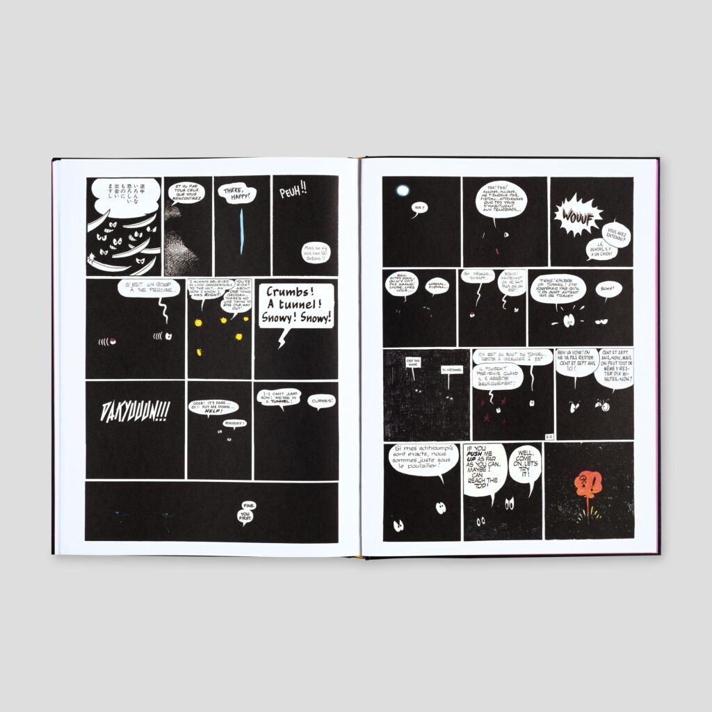 Tarwar is Manouach’s latest comic book that builds upon his previous work Abrege de bande dessinee franco-belge while dramatically expanding scope to examine comics as a truly global medium. Using computer vision technology and his production studio to analyze over 12 million digitized comic book pages spanning continents, languages, and cultural contexts—from Korean webtoons and Indian superhero folktales to Brazilian quadrinhos and religious illustrated stories—the work identifies black panels as a remarkably omnipresent visual element that haunts comics across all traditions.